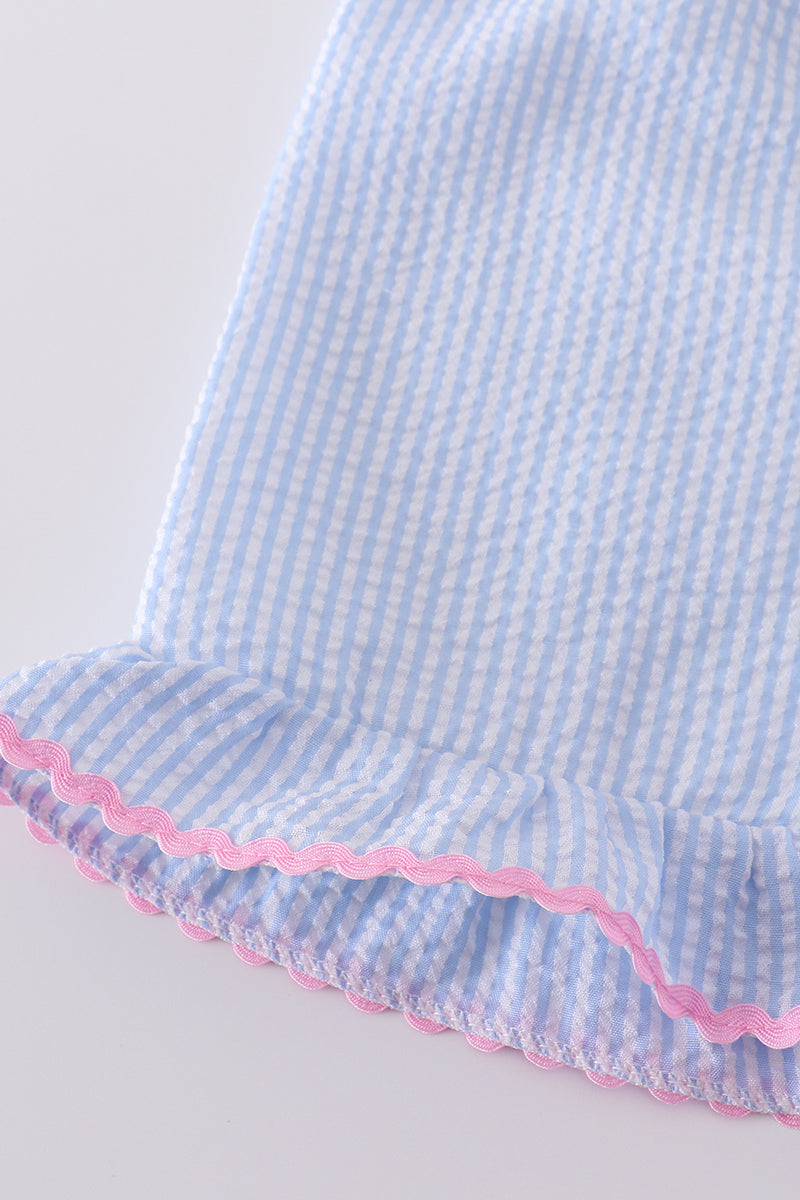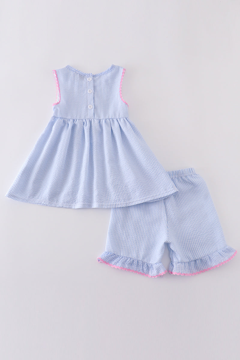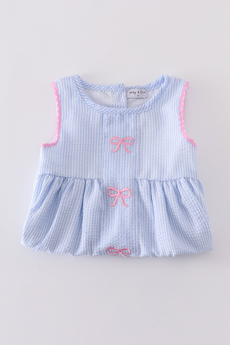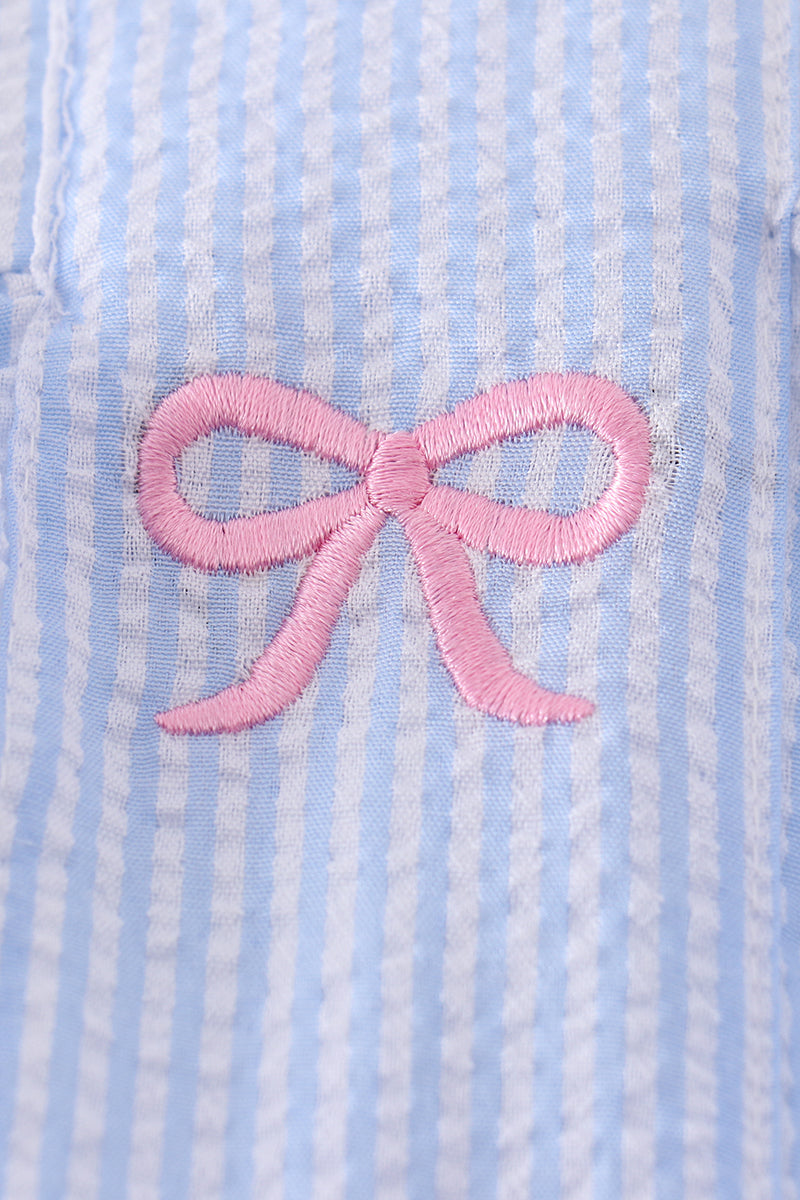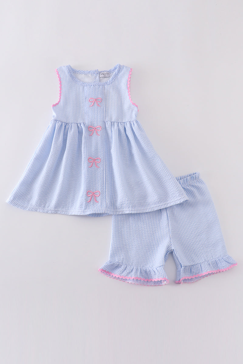 Seersucker Bow Embroidery Girl Set – Blue & Pink