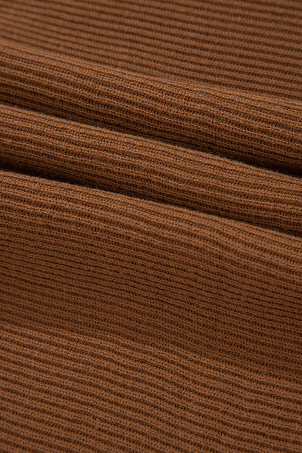 Camel Ribbed Knit Drop Sleeve V-Neck Loose Fit Sweater