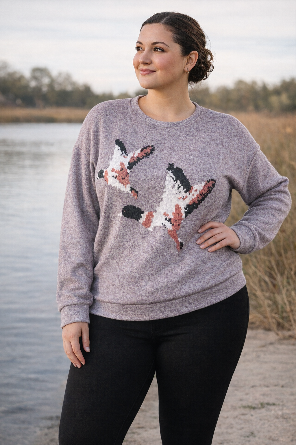 Our Flying Duck Top brings a touch of countryside whimsy to your cold-weather wardrobe. The relaxed fit and classic crew neckline make it an easy piece to throw on with denim, corduroys, or layered under your favorite outerwear.