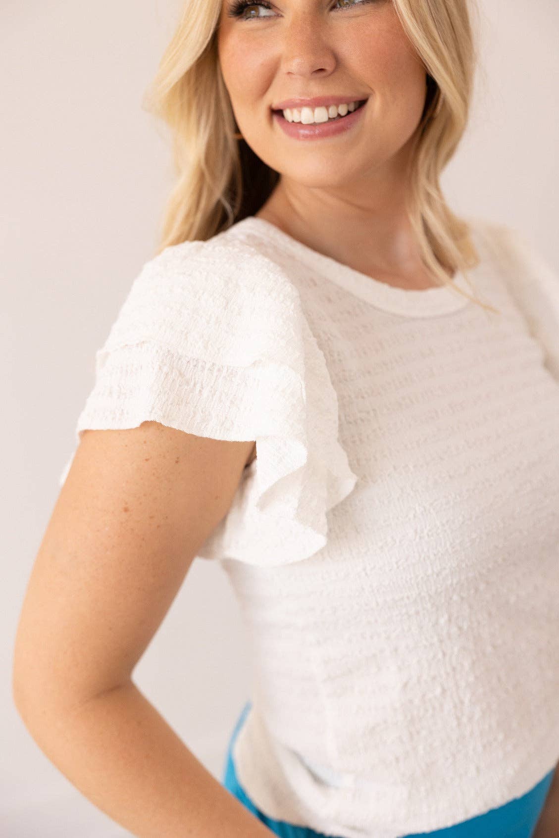 The Flutter Sleeve Top offers a relaxed fit with a high-stretch, unlined design for all-day comfort. The crew neck keeps it classic, while the flutter sleeves bring effortless movement, gracefully covering the shoulders and part of the upper arms for a flattering and airy look.
