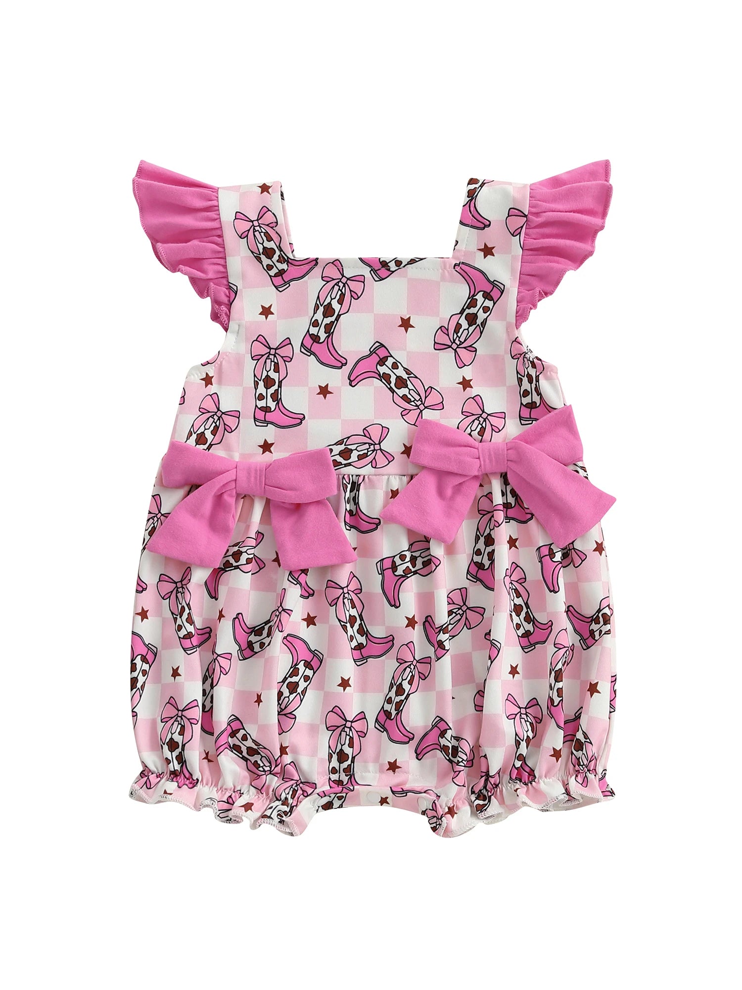 Pink Cowgirl Boots Bubble Romper