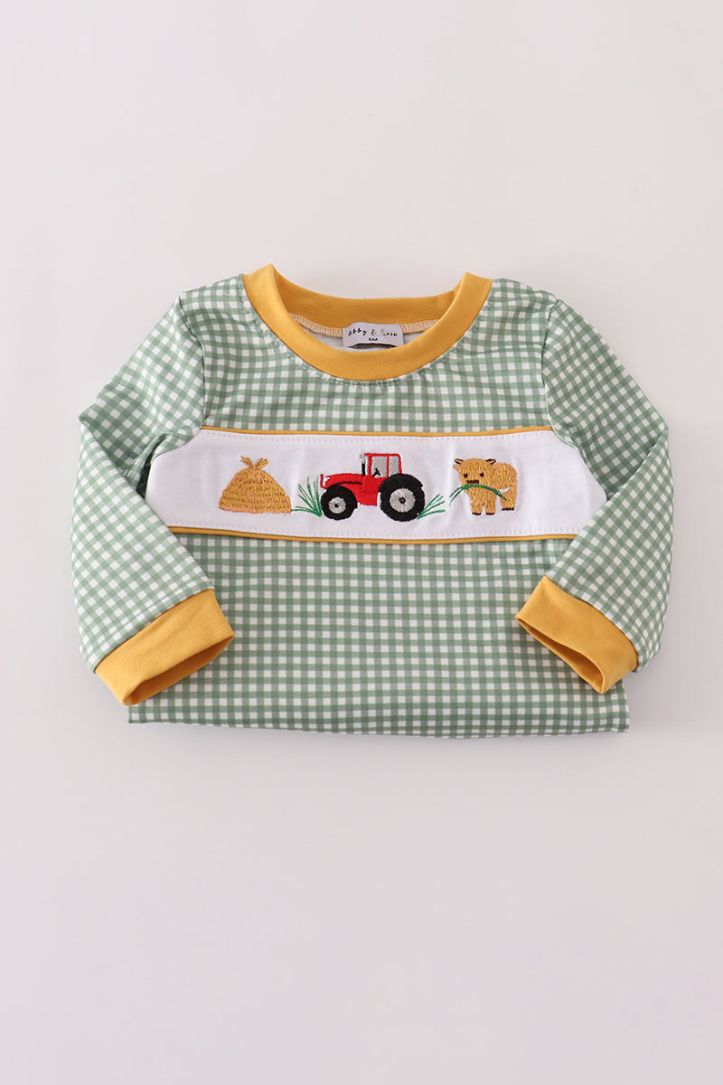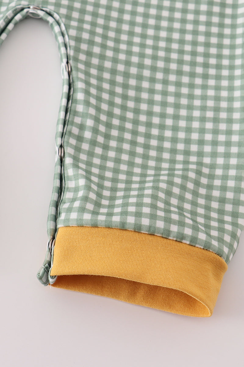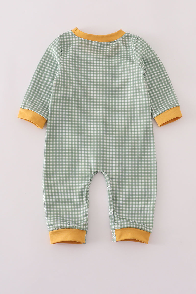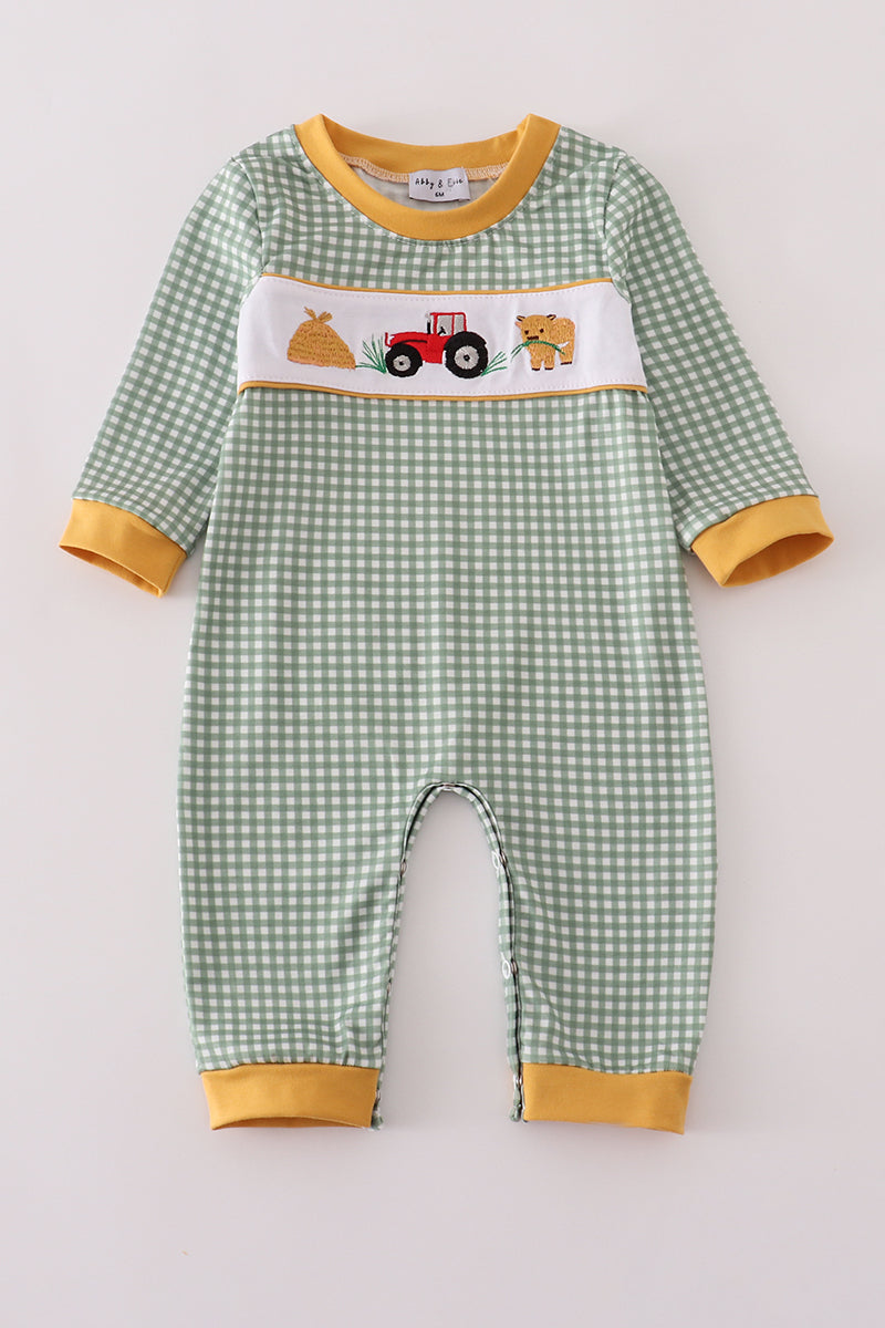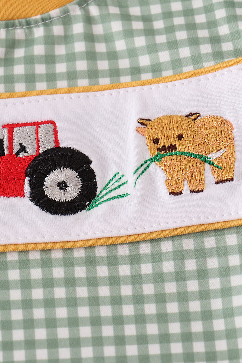 This gingham romper features the sweetest Highland cow embroidery for a touch of rustic charm. Soft, stretchy, and made for everyday play and comfort.