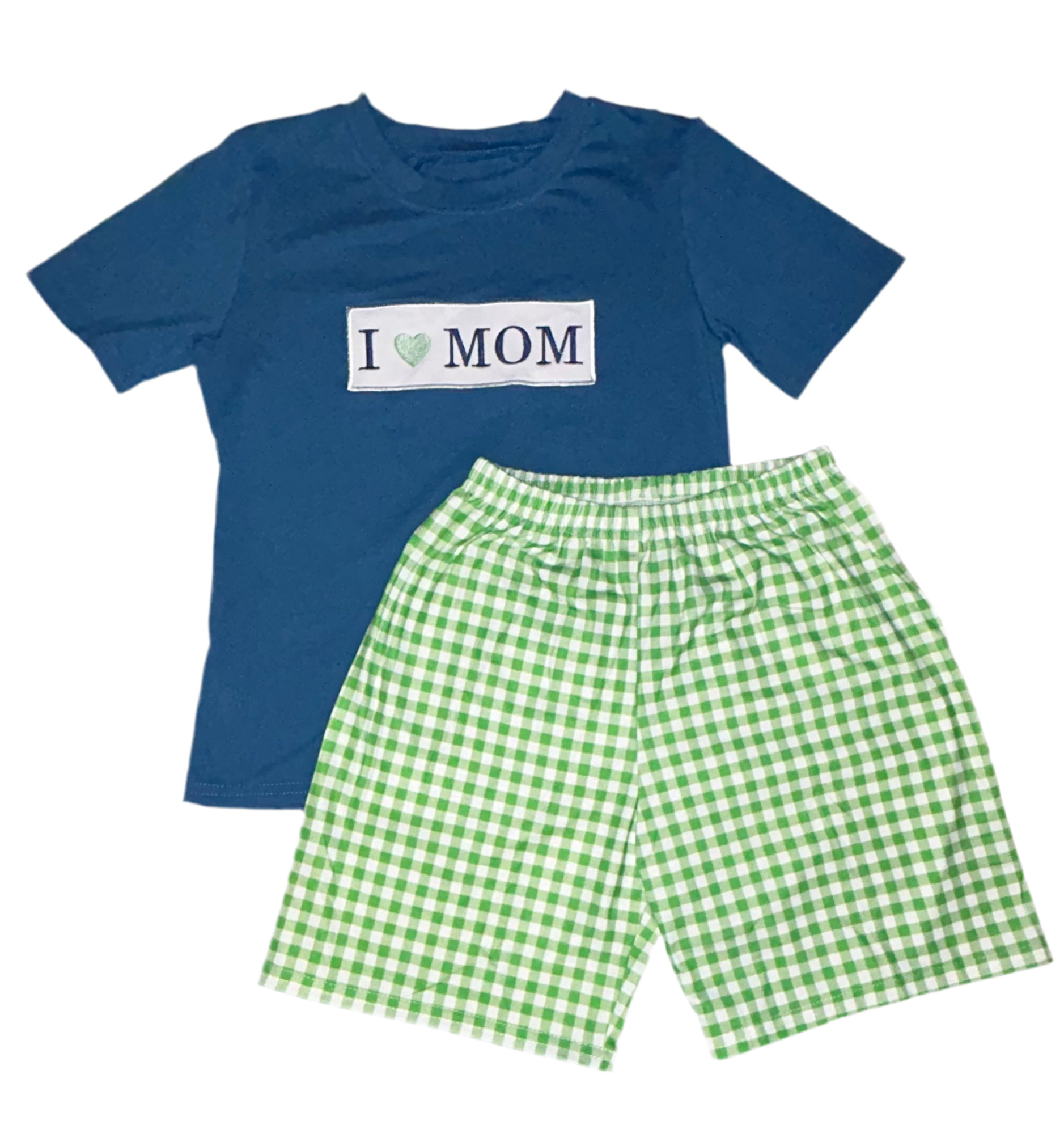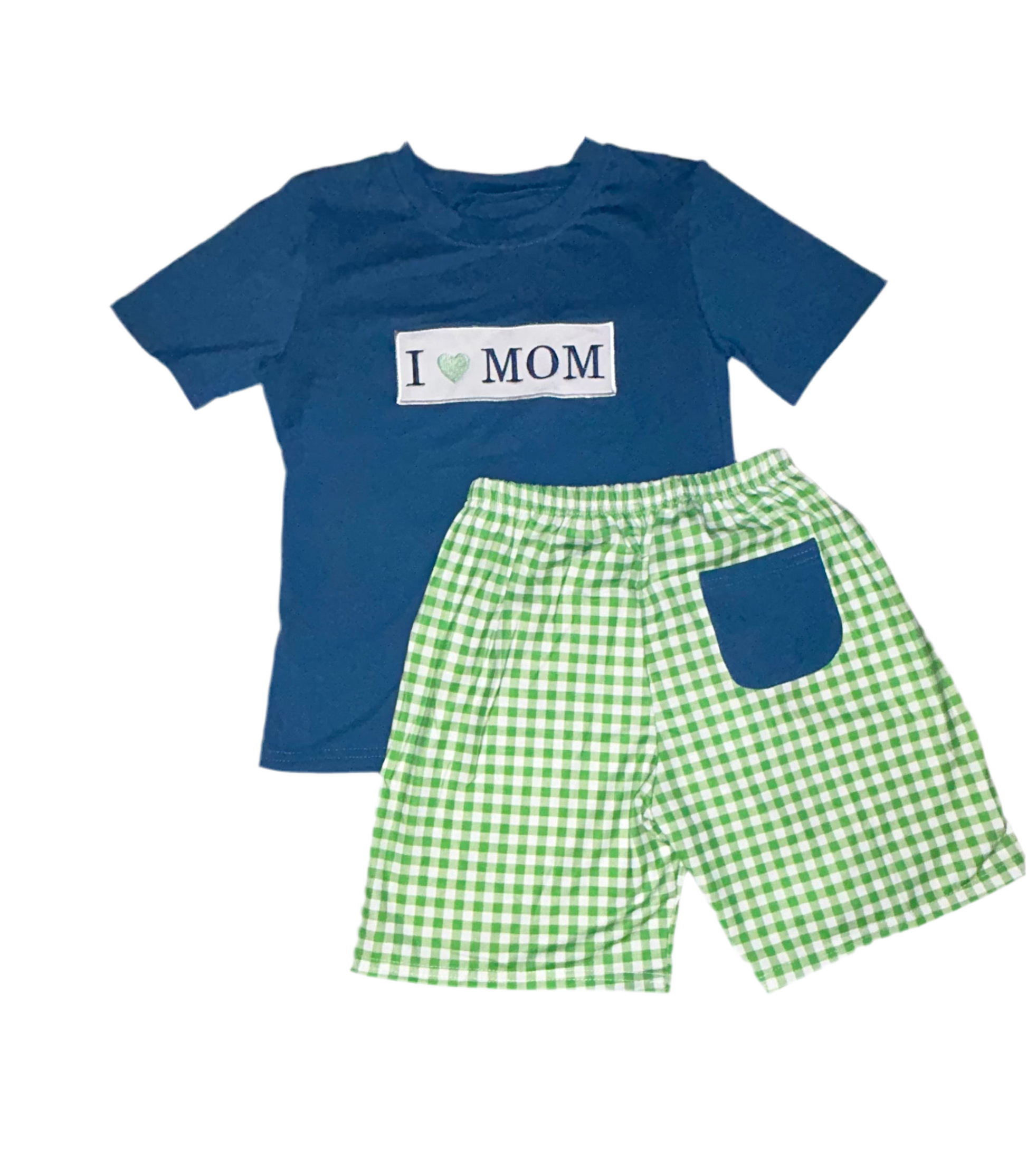 I ❤️ MOM Tee & Gingham Shorts Set 💚