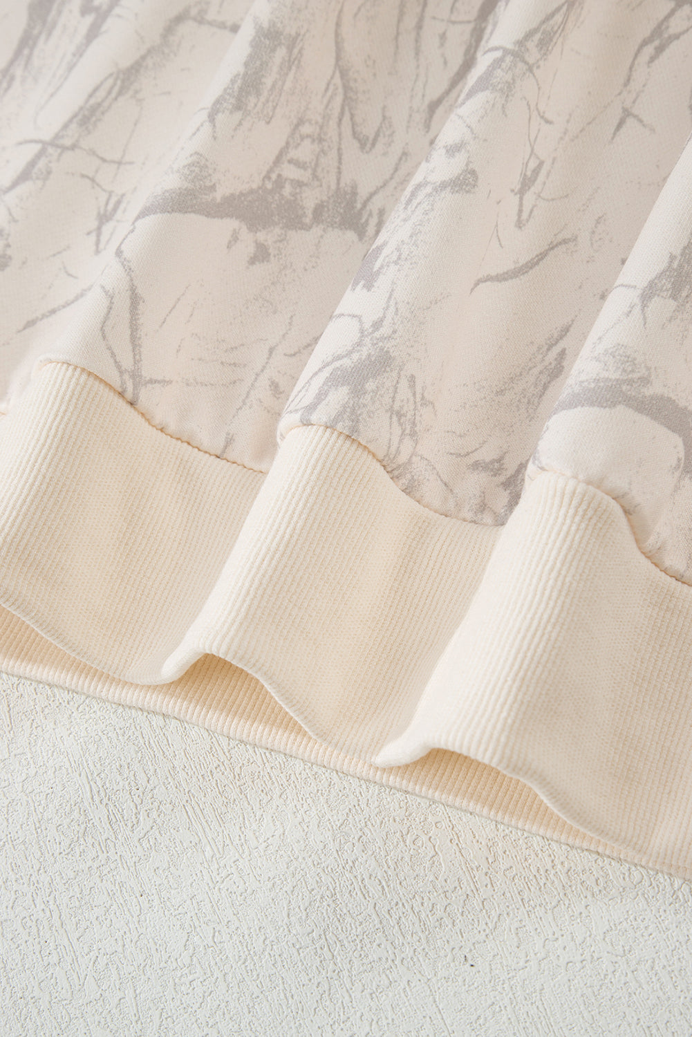 A cozy, oversized sweatshirt with a trendy camo print and a relaxed mock-neck design — perfect for casual days, errands, or comfy layering.