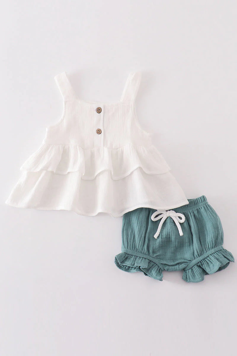 Made from soft and breathable muslin fabric, this set features delicate ruffles for a touch of cuteness. Perfect for keeping your little one comfortable and fashionable (without trying too hard).